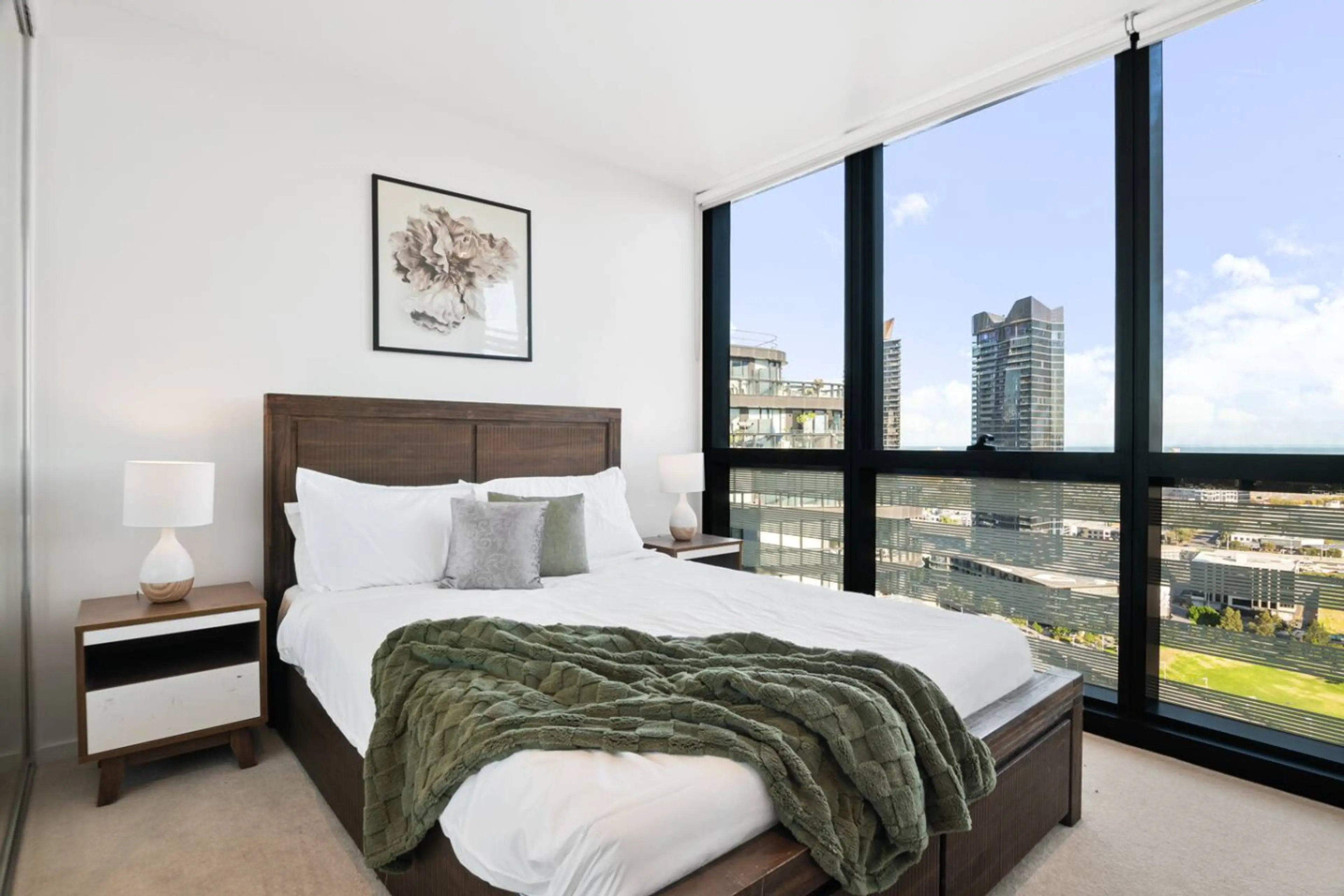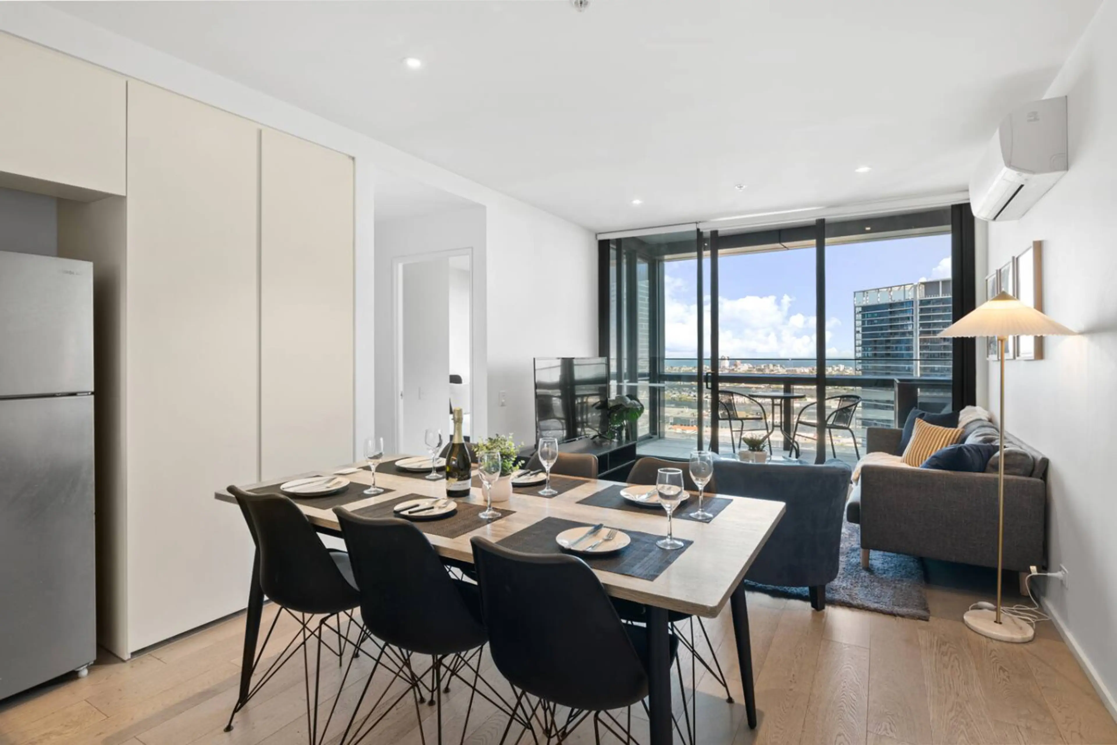 Welcome to your sky-high escape in Docklands! This modern 2BR apartment features stunning water views, a private balcony, and stylish open-plan living. Enjoy queen beds, a fully equipped kitchen, 55” Smart TV, and access to resort-style amenities including a gym, indoor pool, and lounge. Located...